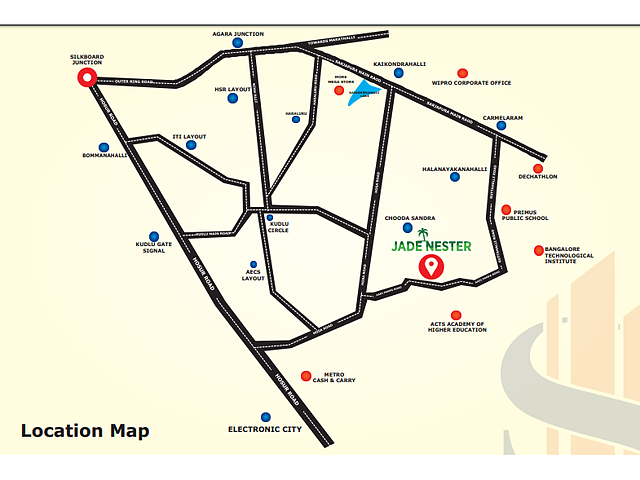 Smaya Jade Nester is a BDA Approved Premium Residential Plotted Development. It is located in the Heart of bustling IT Corridor of Electronic City. Smaya Jade Nester is easily accessible to all parts of Bangalore. Right from Hospitals to Educational Institutions to Major Shopping malls to IT Work Stations. Wipro HQ, Wipro SEZ and Sarjapur Decathlon is a 10 minutes drive where as Total Mall in Sarjapur road is 15 minutes away.